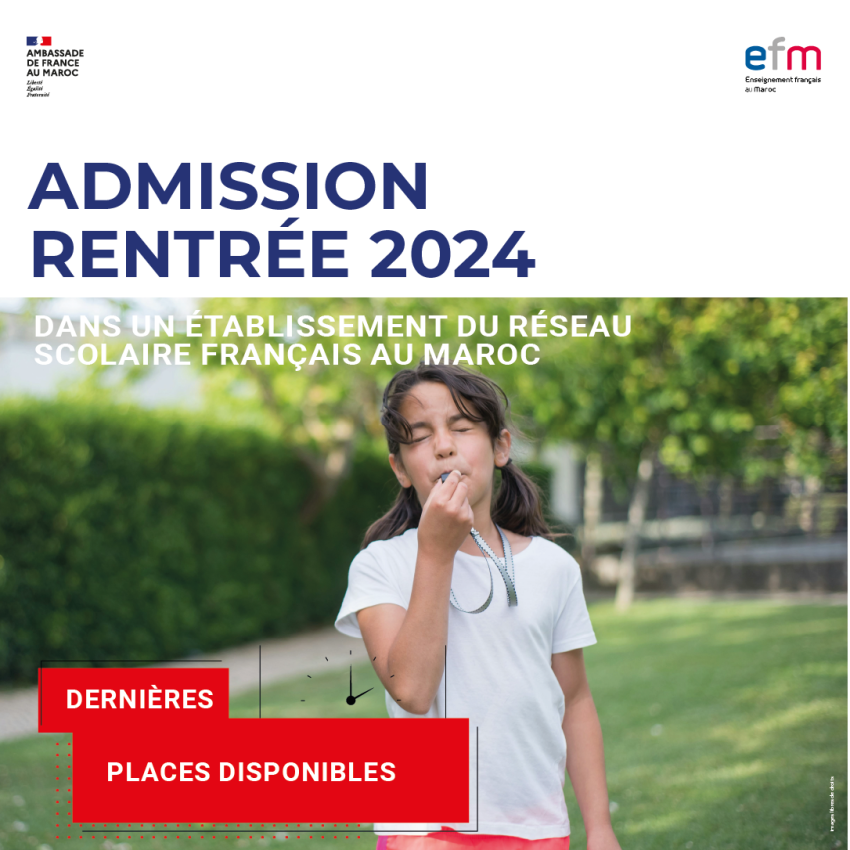Prolongation de la campagne d’admission Rejoignez le réseau des établissements scolaires français au Maroc ! Chers parents, vous êtes