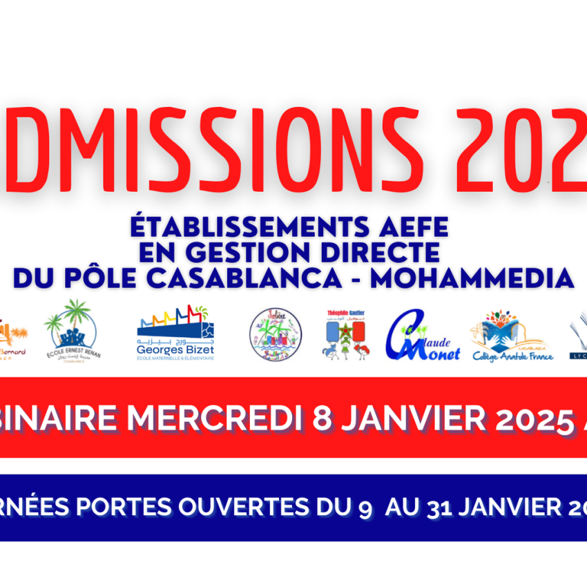 De la petite section à la terminale, les 8 établissements en gestion directe de l’AEFE du Pôle Casablanca-Mohammedia souhaitent à toutes les