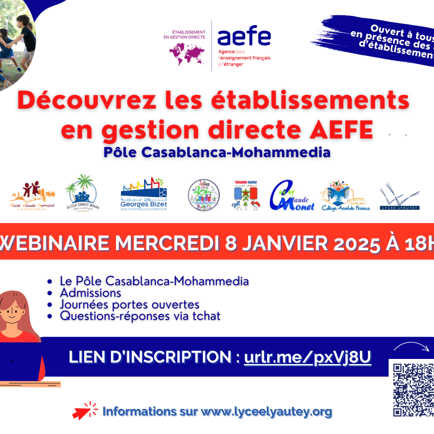 Dès aujourd’hui, nous vous invitons à rejoindre le réseau de l’enseignement français au Maroc , fort de plus de 100 ans d’expérience et