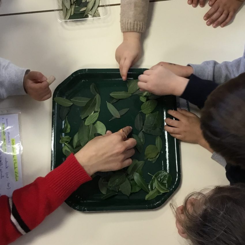 Quand les mamans (de l’association APEEF) sont venues nous avons observé un olivier. Les feuilles sont ovales, elles ont un côté vert clair et