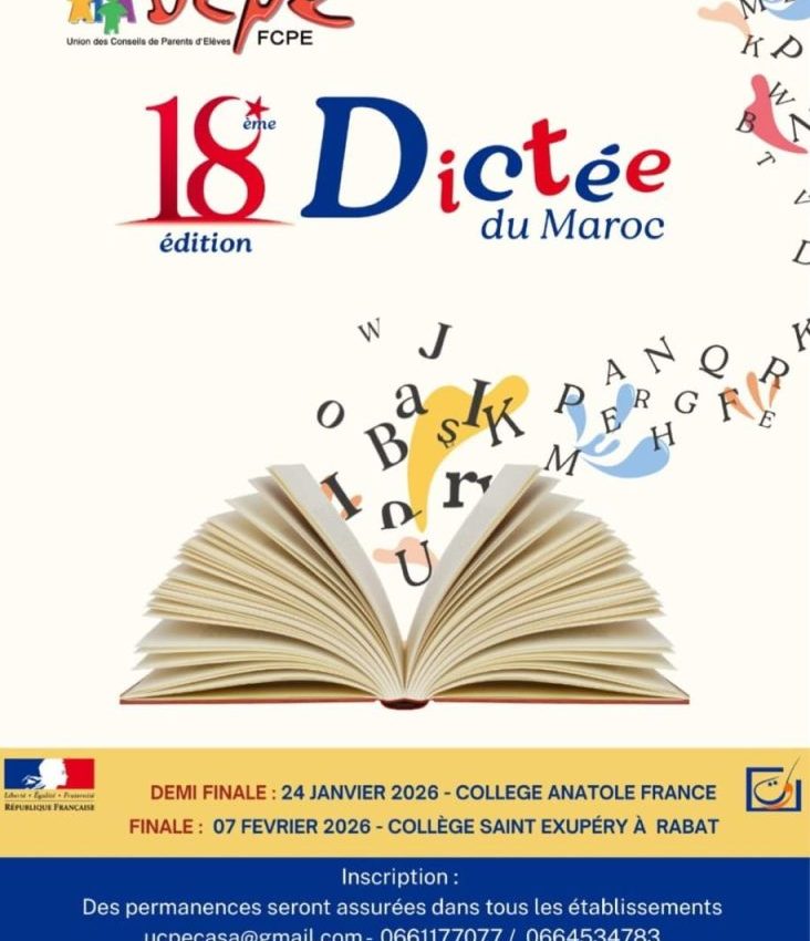 Nous avons le plaisir d’annoncer que deux élèves de notre école ont été sélectionnés pour la finale de la Dictée du Maroc. Samedi 17