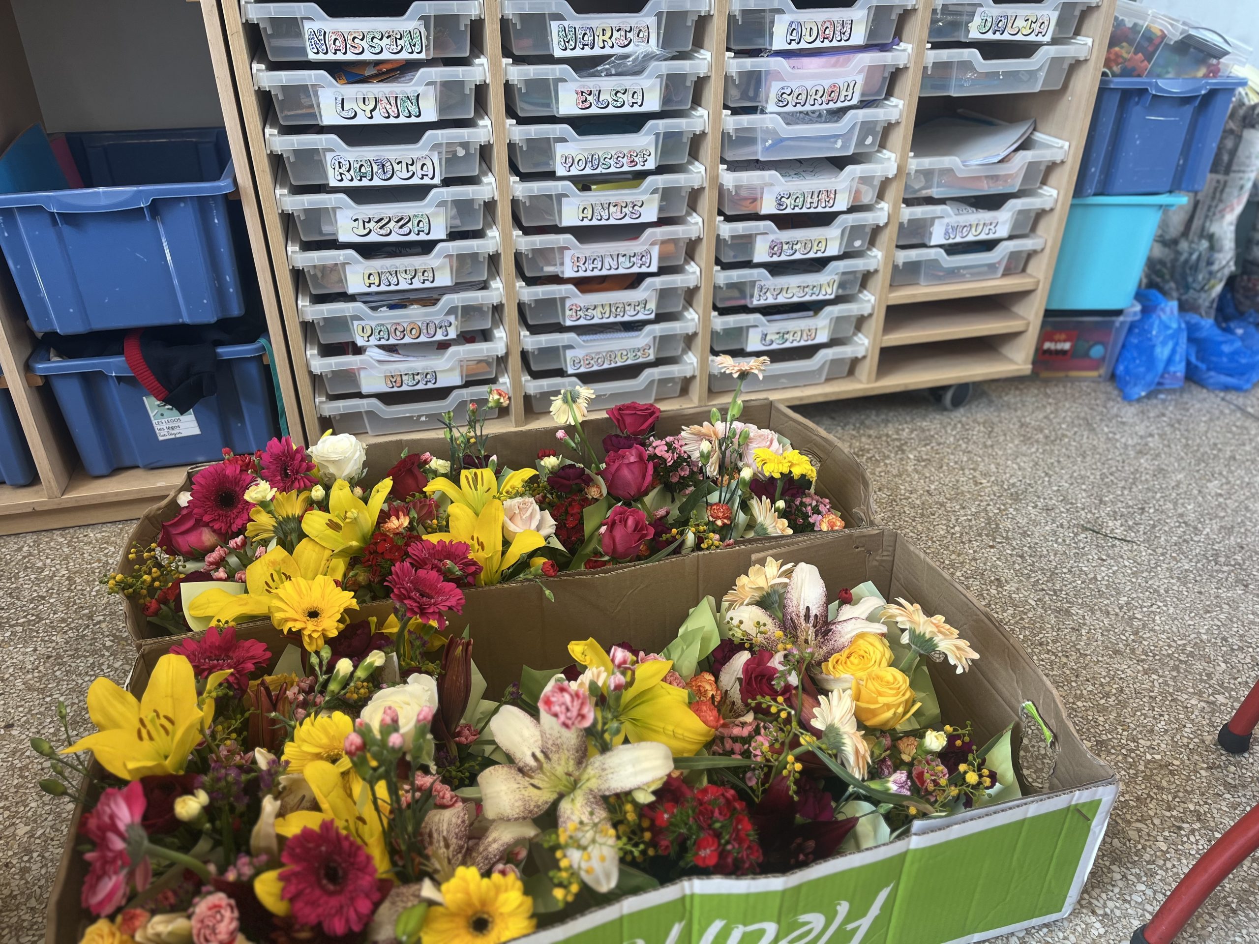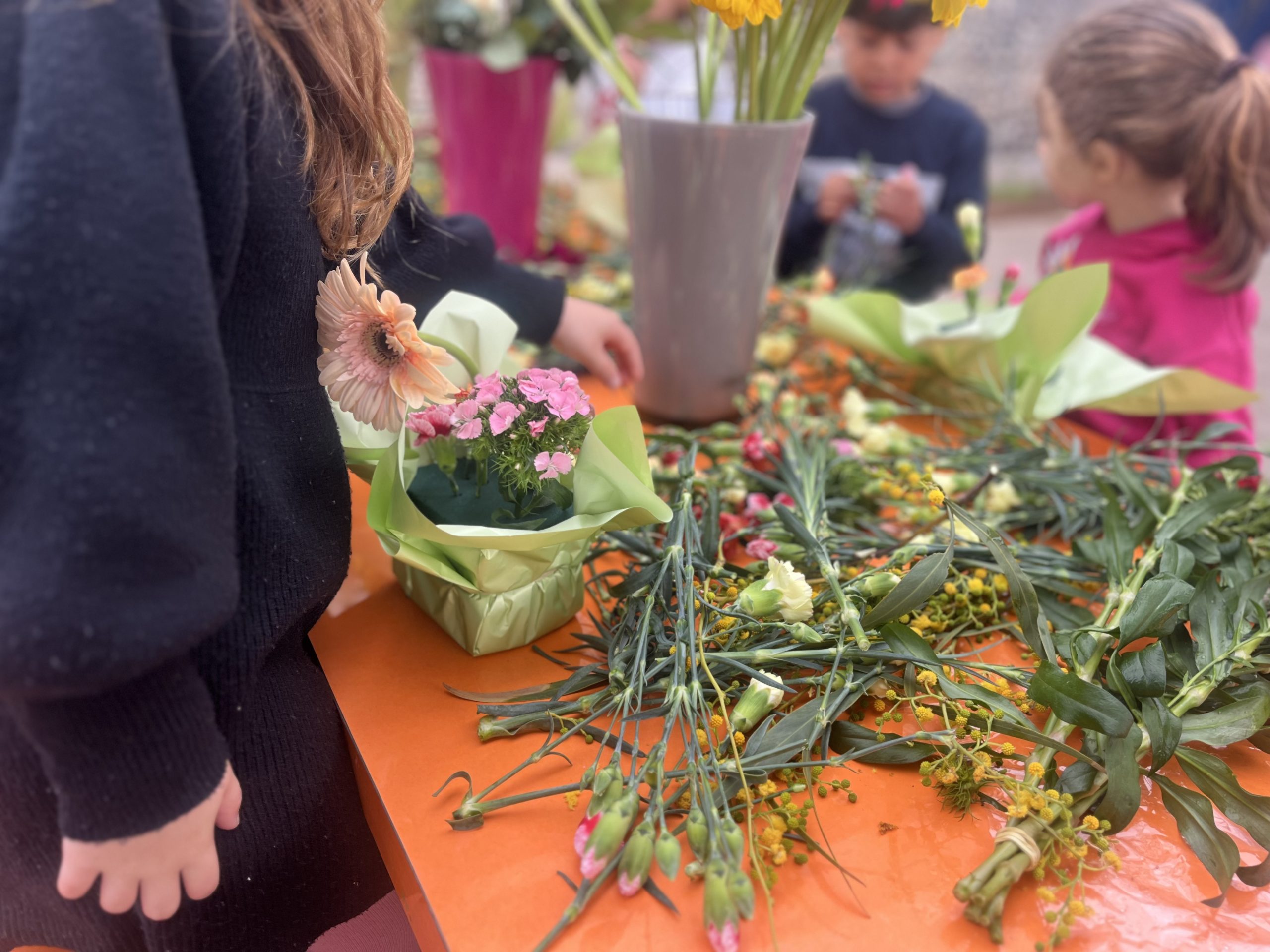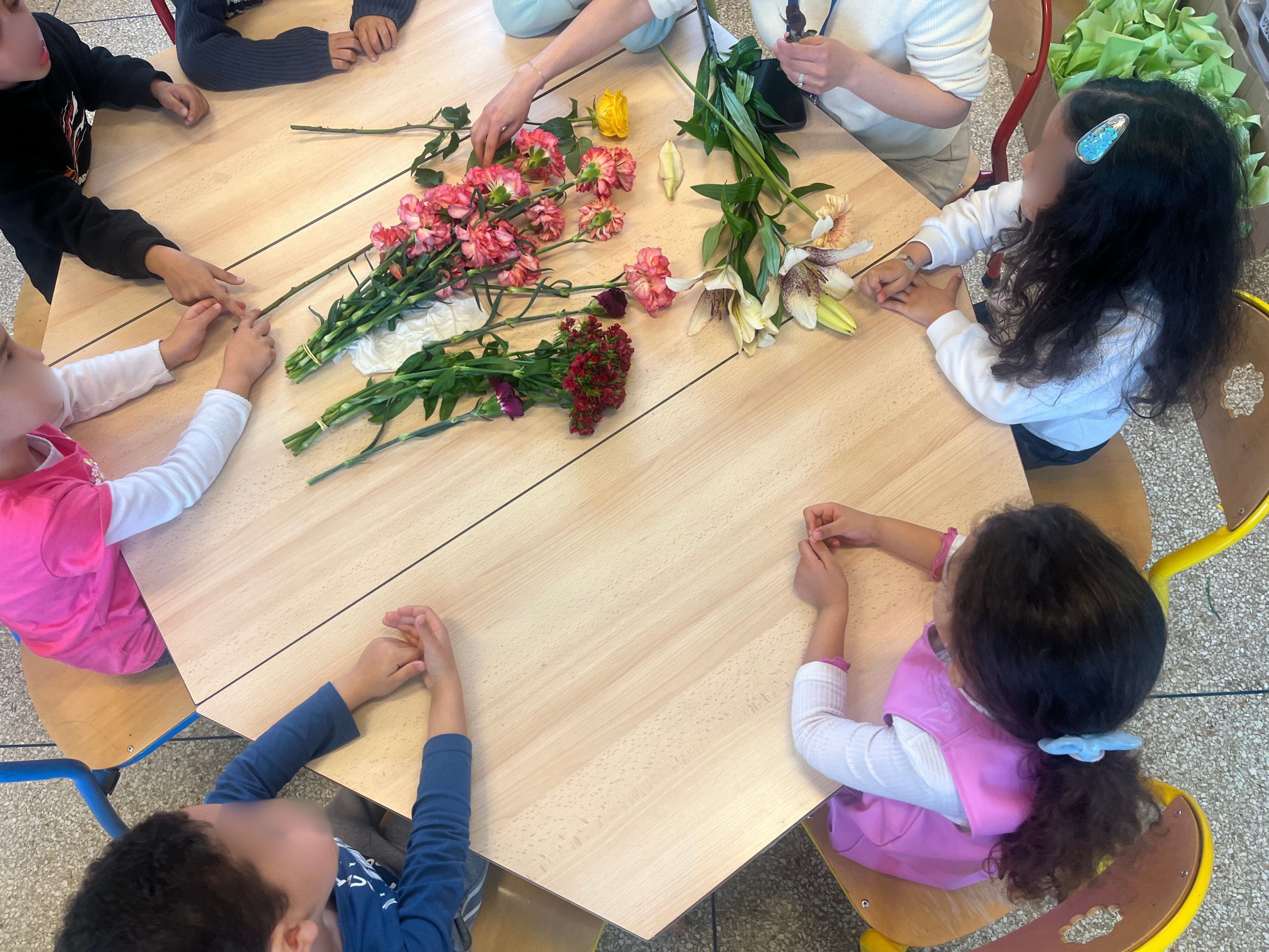 Jeudi 20 mars, jour du printemps, les GSD ont eu la chance de participer à un atelier fleur, organisé par une maman de la classe. Les enfants ont découvert différentes sortes de fleurs, le vocabulaire, le cycle d’une fleur et ont pu confectionner de jolis bouquets.