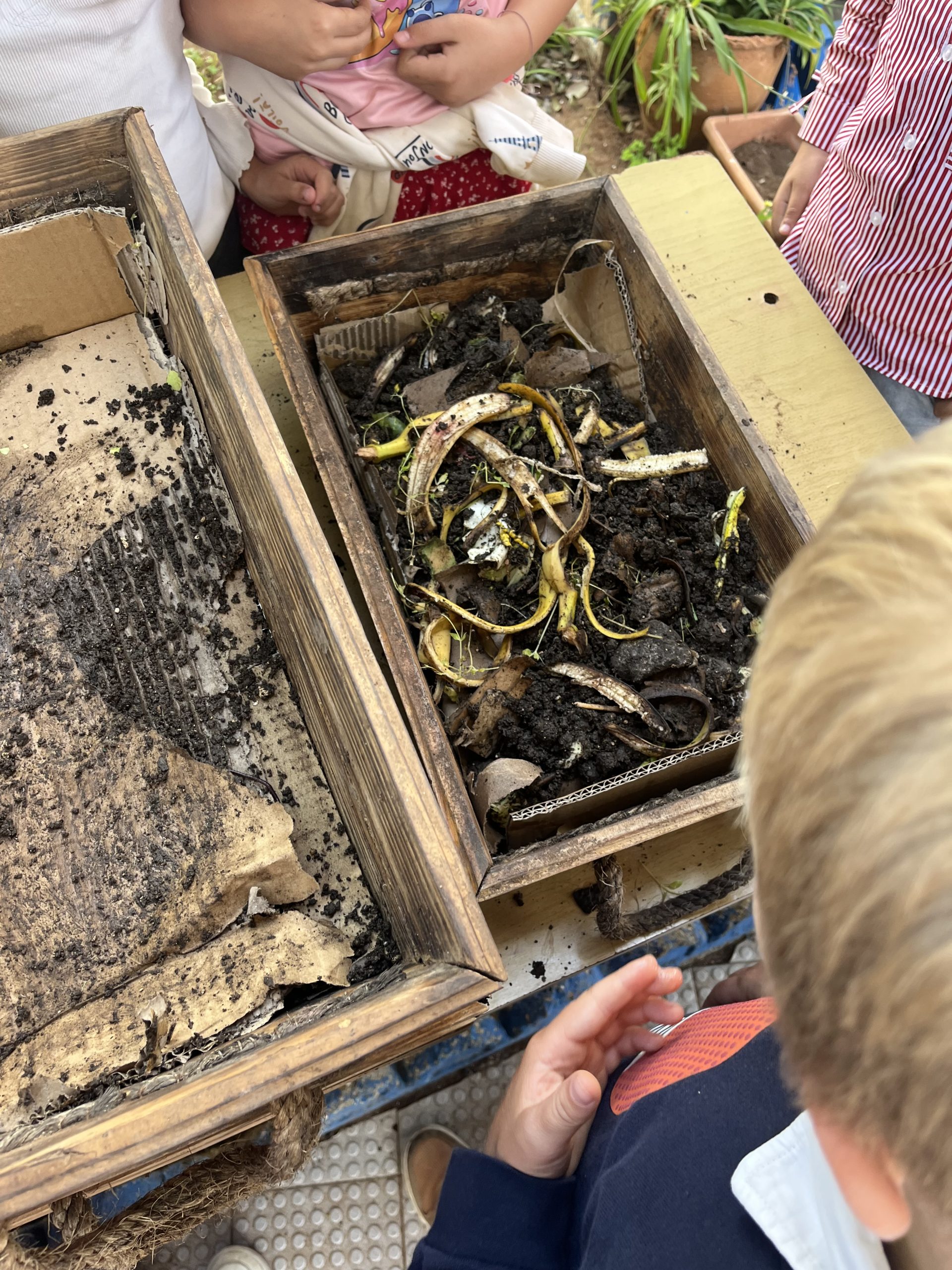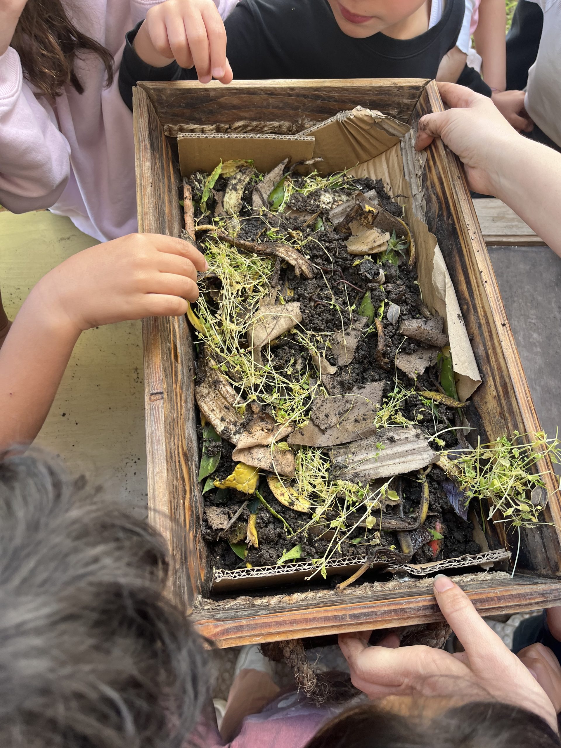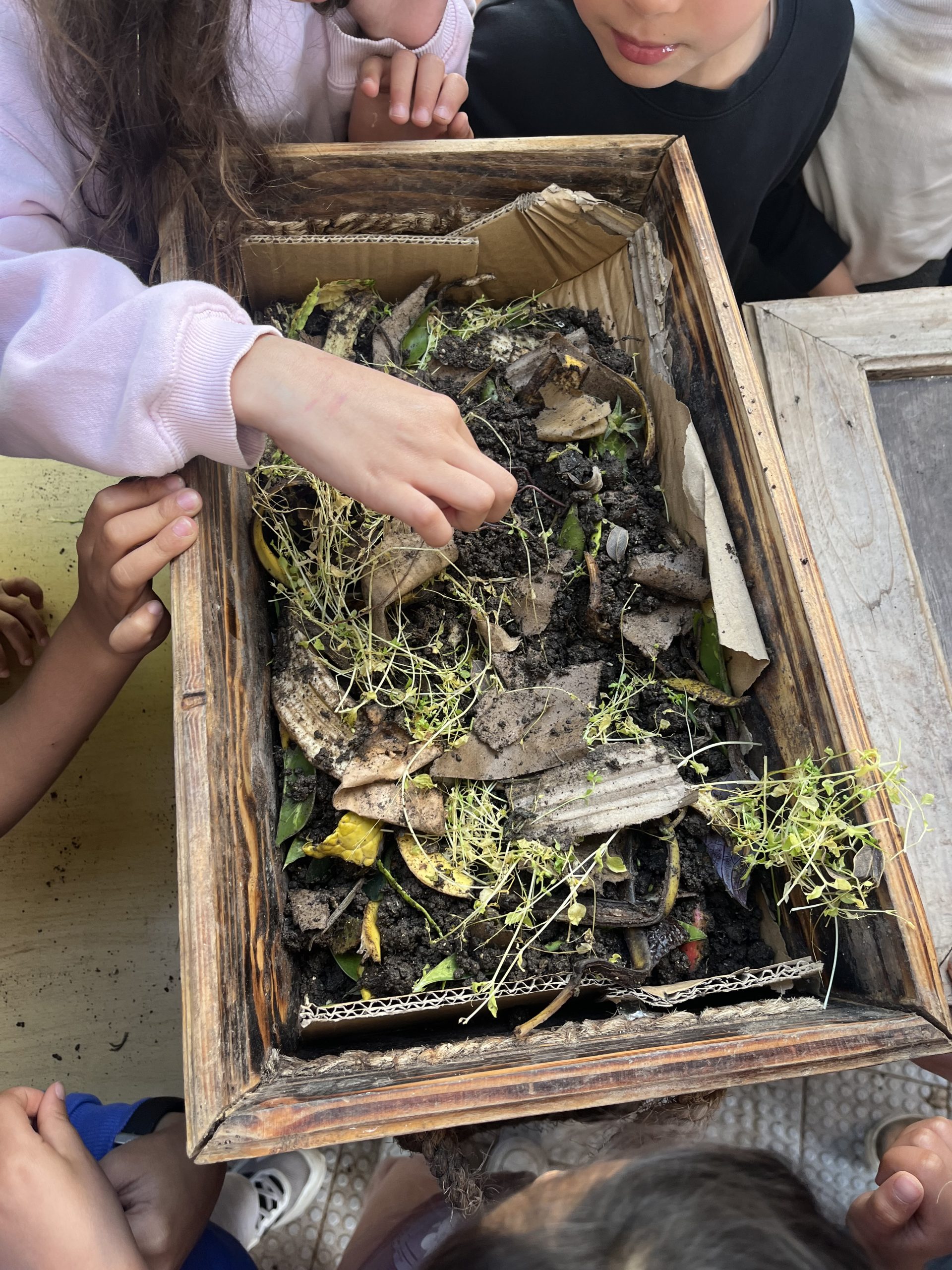 Lors de cette intervention, les enfants ont découvert le principe du compostage : transformer les déchets organiques (comme les épluchures de fruits et légumes) en un engrais naturel riche pour la terre. Ils ont appris que certains déchets peuvent être recyclés de manière naturelle plutôt que d’être jetés.