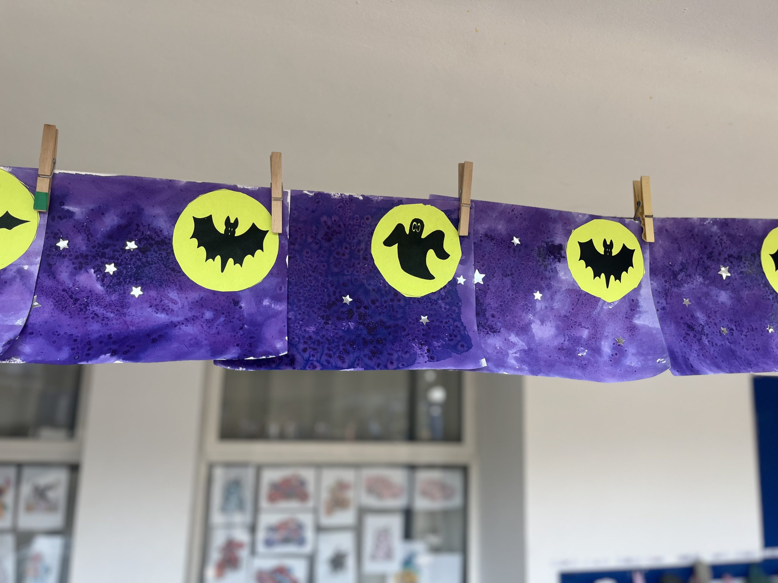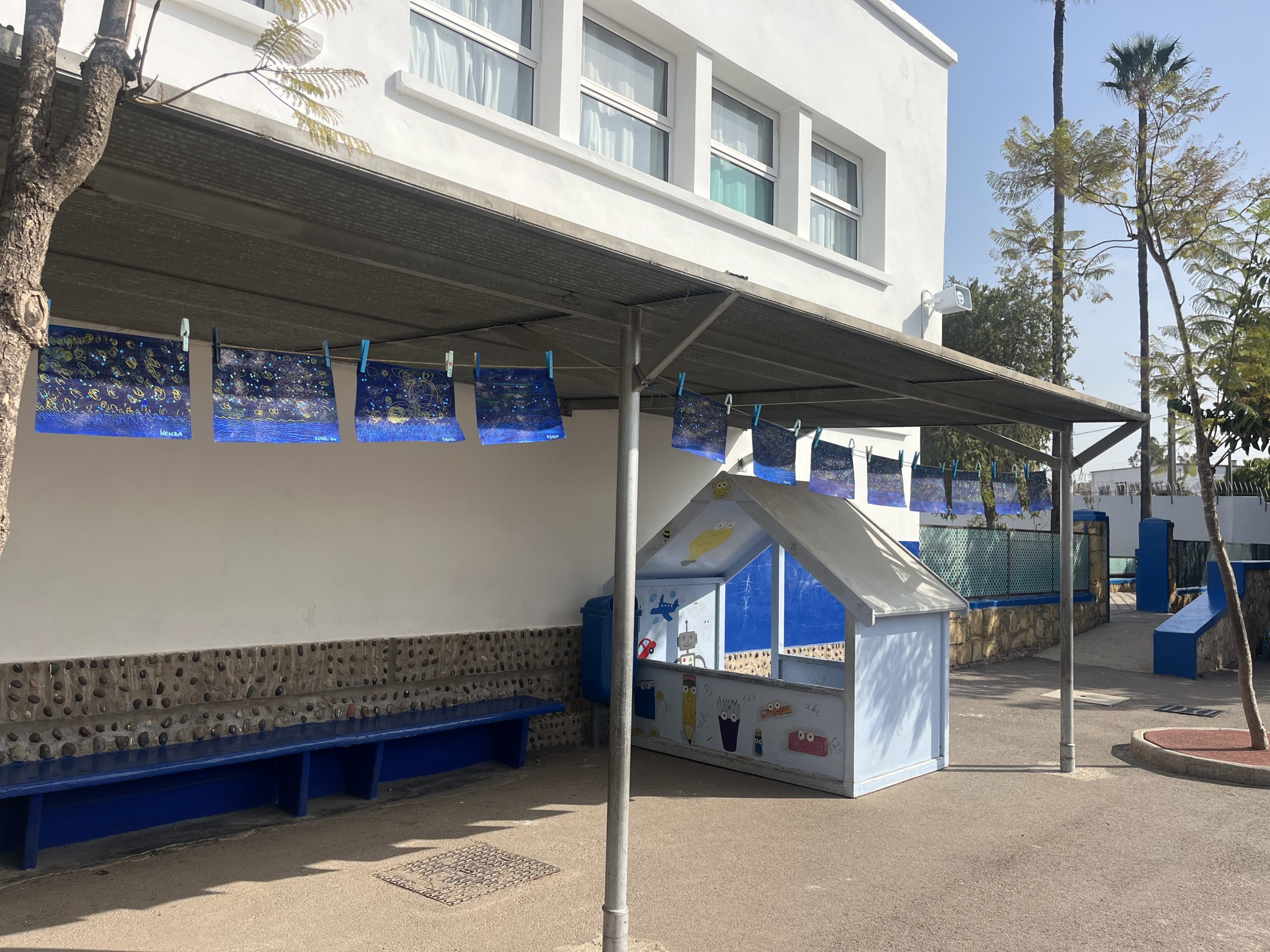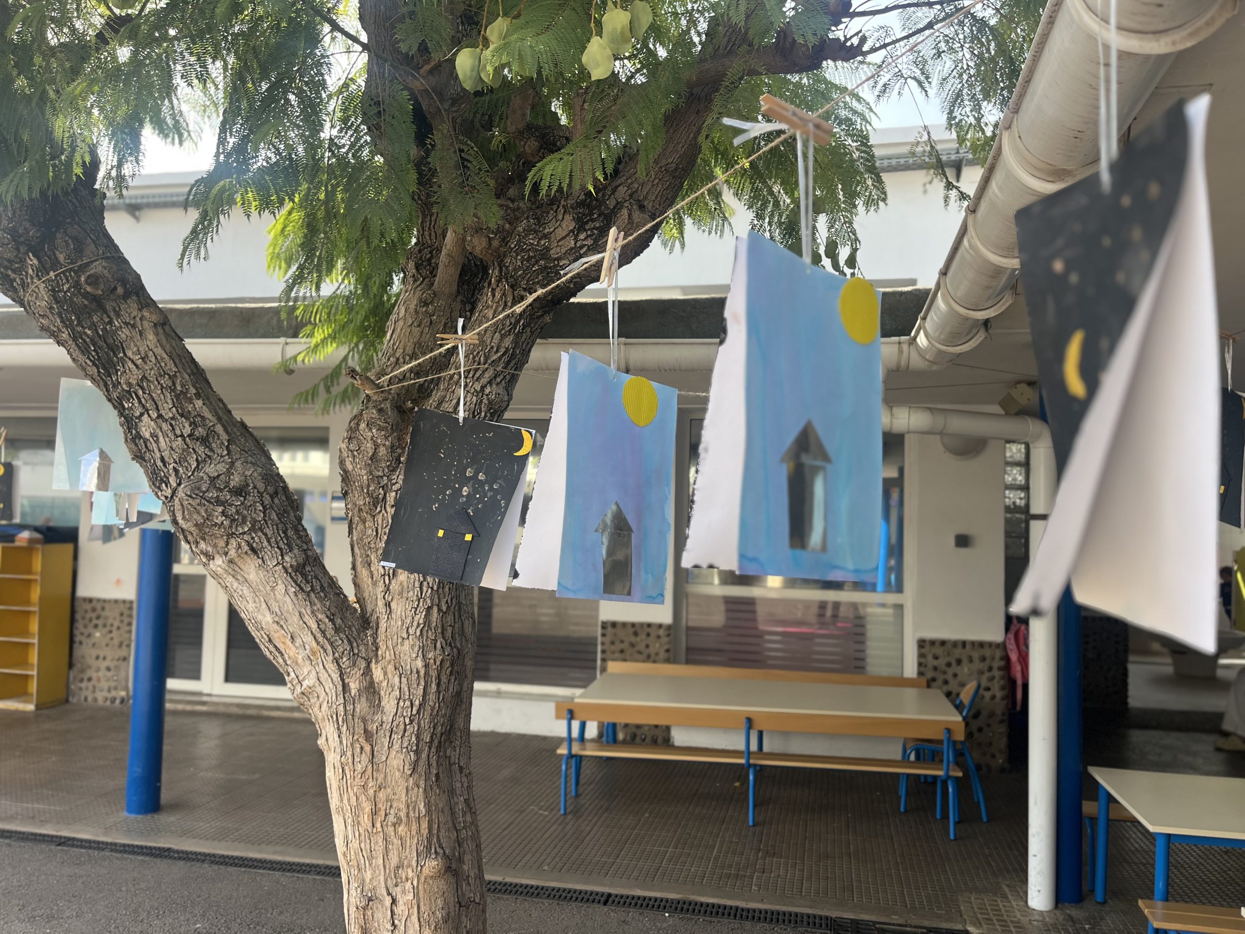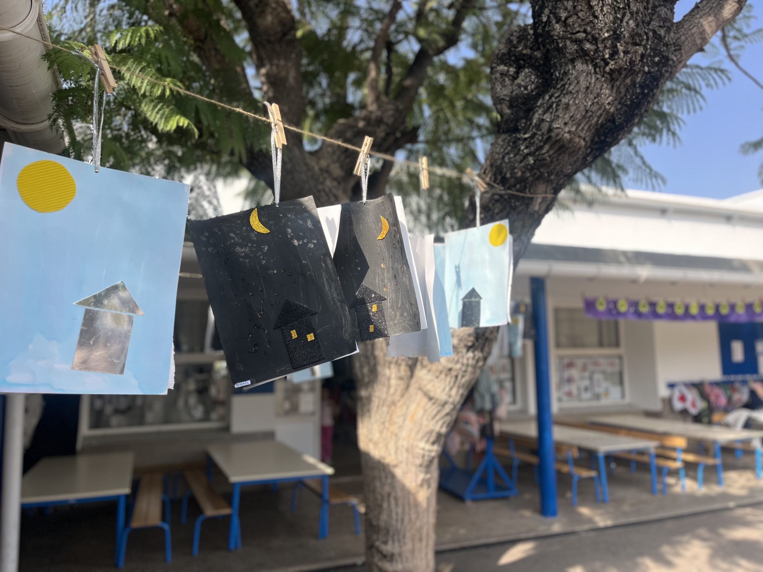 Les élèves de moyenne section ont participé à La Grande Lessive 2025 sur le thème “Nuit et jour, réfléchir les lumières!”. Chacun a réalisé une belle œuvre pleine de paillettes, de contrastes et d’astres. Les parents ont ensuite été invités à venir admirer leurs créations suspendues pour l’occasion.