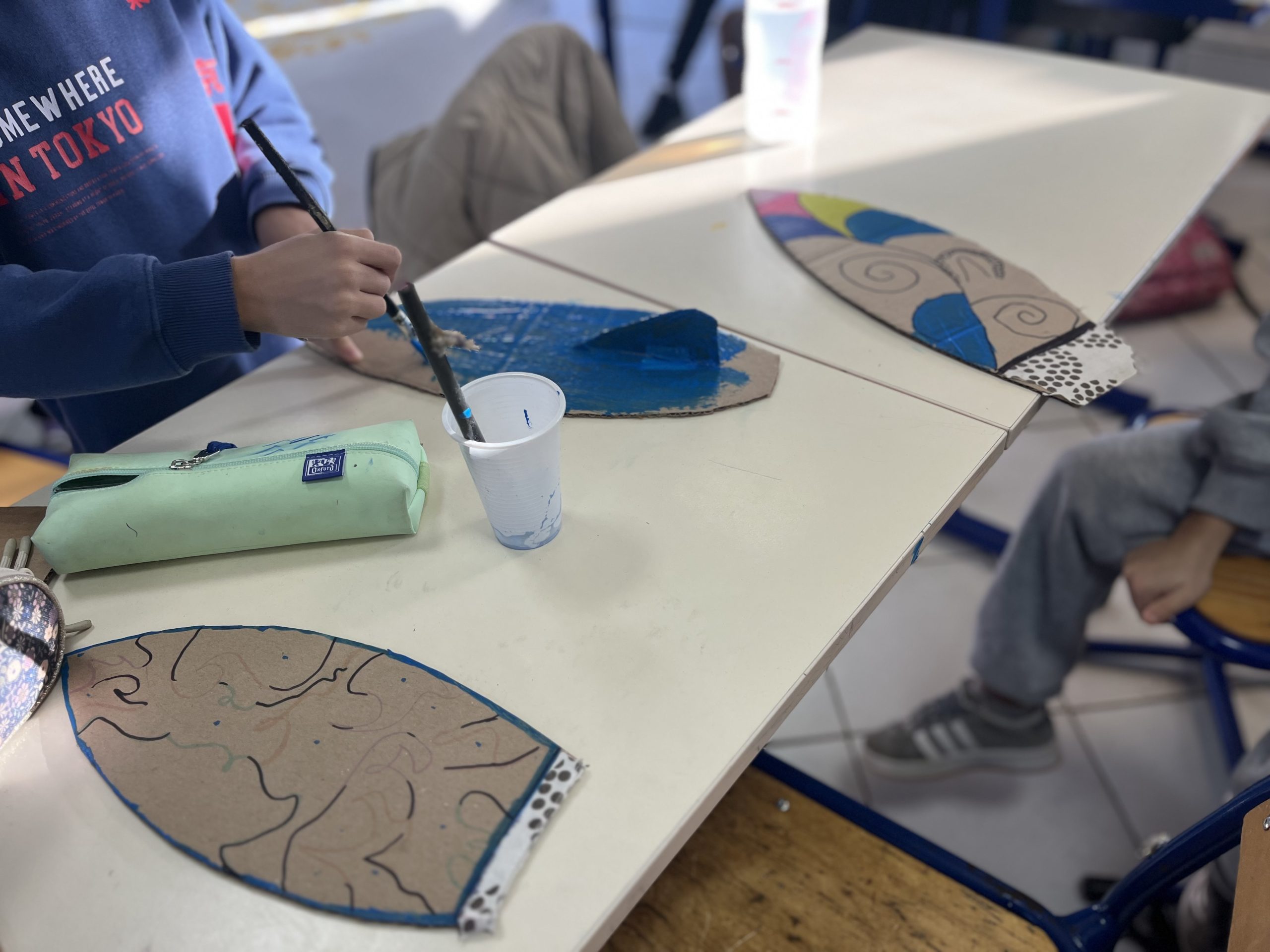 Cette année, les CM1 se sont inscrits aux ateliers de l’artiste Zine El Abidine, dont le travail s’inspire fortement de la culture et de l’imaginaire marocains.